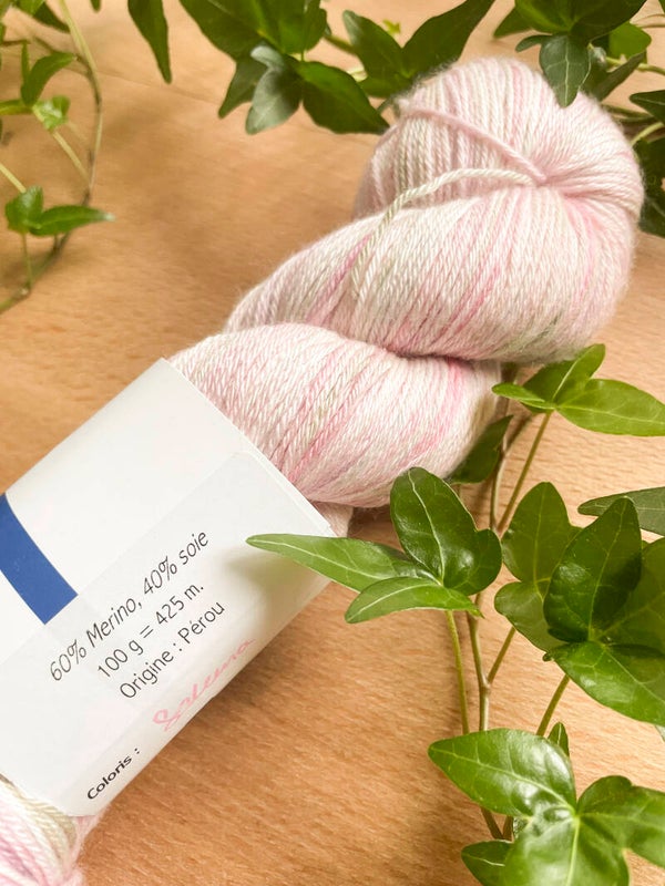 Écheveau de laine Merino soie (4 ply) - fingering (coloris Sakura)