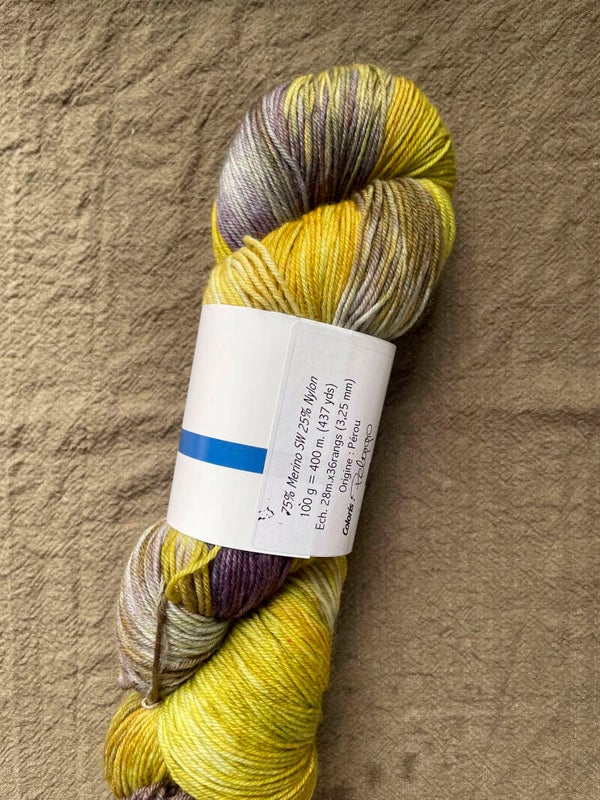 Mélange de mérinos (75%) et nylon (25%) pour un fil polyvalent résistant bien à l’usure, lavable en machine, parfait pour confectionner des chaussettes mais parfait aussi pour les châles et autres vêtements portés à même la peau.