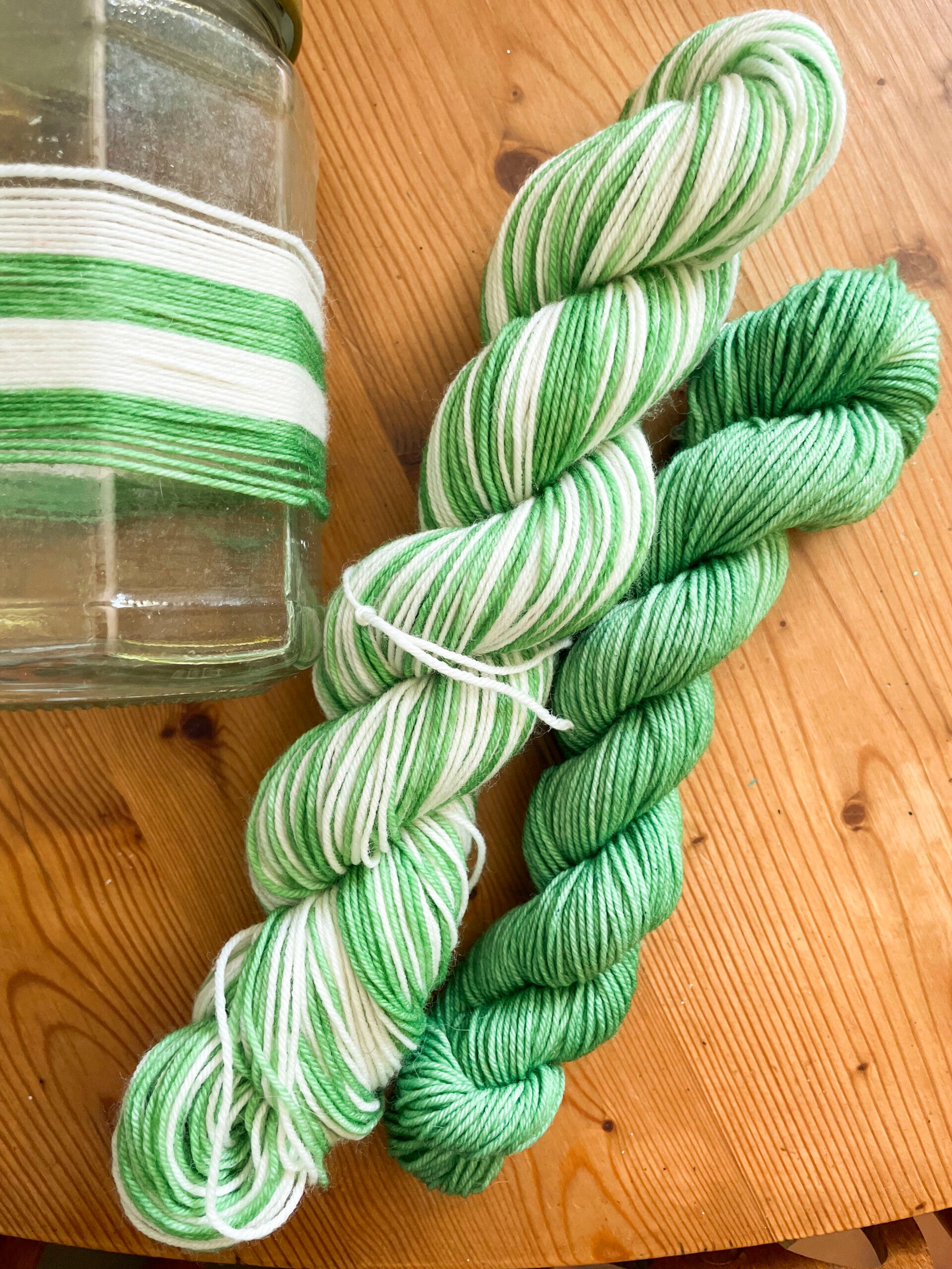 Écheveau de laine SW Merino Nylon (4 ply) - fingering (coloris Cabanes de plage - rayures vertes)
