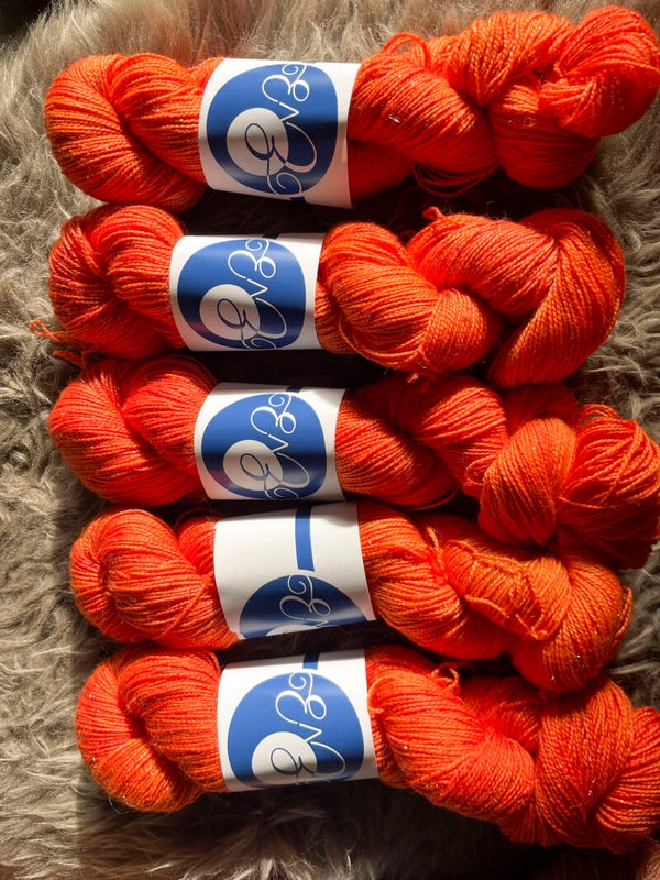 Mélange de 75% laine merino superwash 20% nylon et 5% golden stellina (donne du brillant argenté ou doré) pour un fil polyvalent résistant bien à l’usure, lavable en machine, parfait pour confectionner des chaussettes mais parfait aussi pour les châles et autres vêtements portés à même la peau.