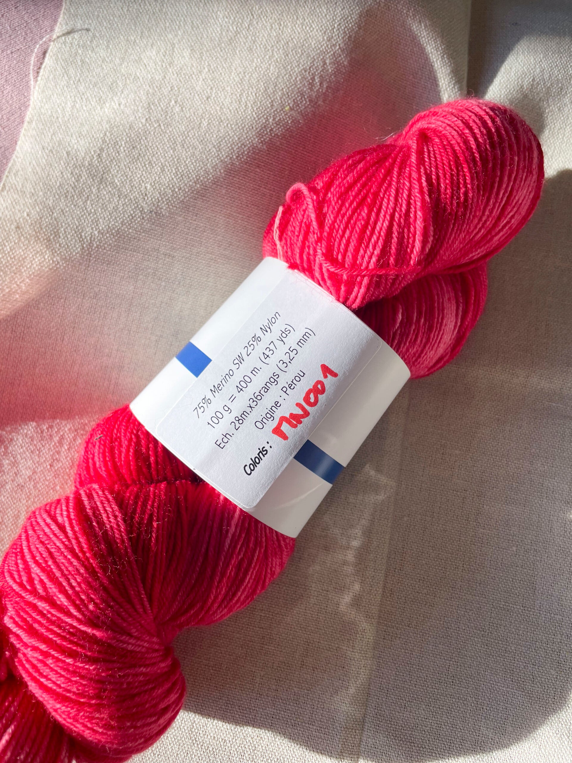 Mélange de mérinos (75%) et nylon (25%) pour un fil polyvalent résistant bien à l’usure, lavable en machine, parfait pour confectionner des chaussettes mais parfait aussi pour les châles et autres vêtements portés à même la peau.