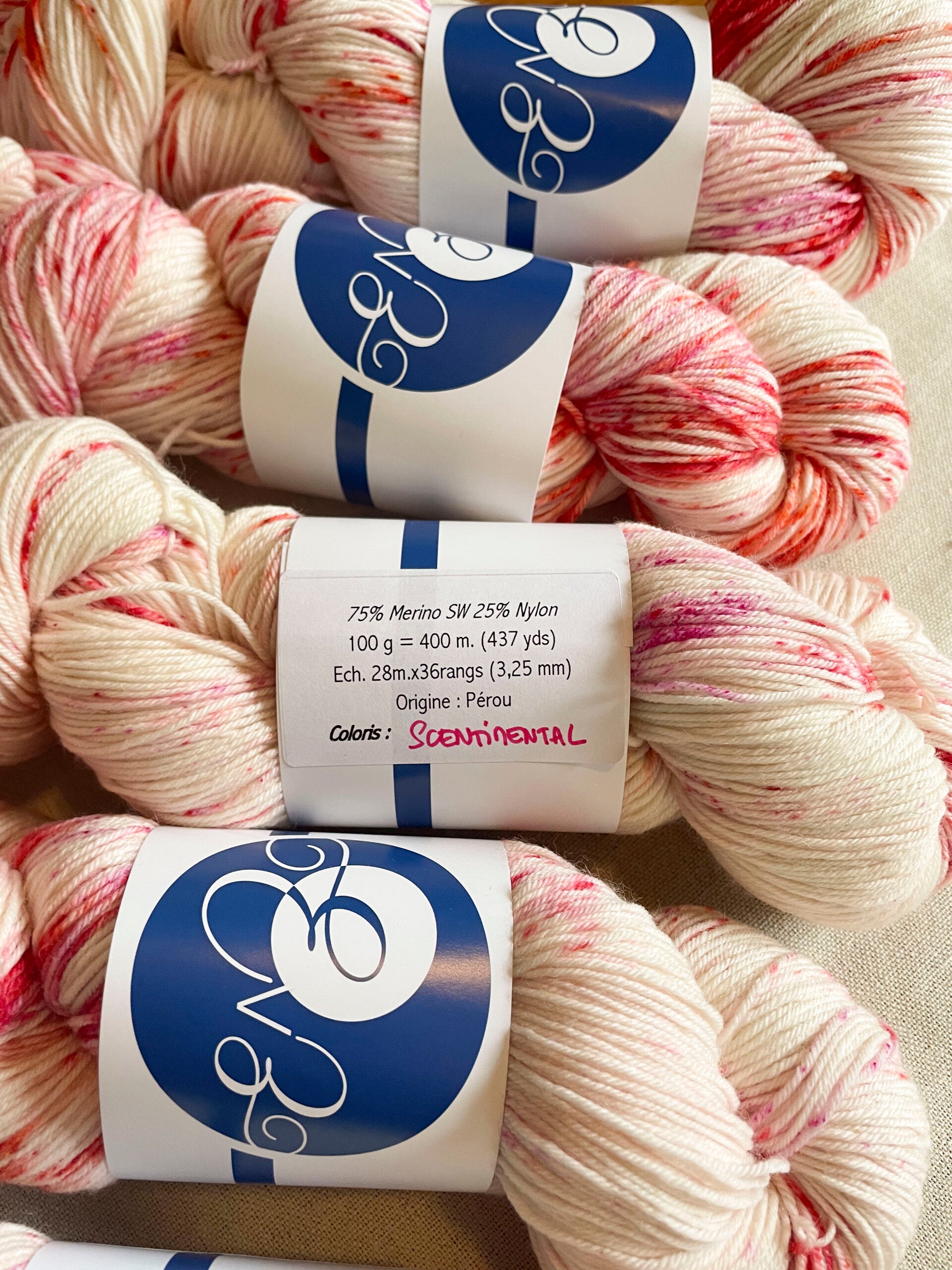 Mélange de mérinos (75%) et nylon (25%) pour un fil polyvalent résistant bien à l’usure, lavable en machine, parfait pour confectionner des chaussettes mais parfait aussi pour les châles et autres vêtements portés à même la peau.
