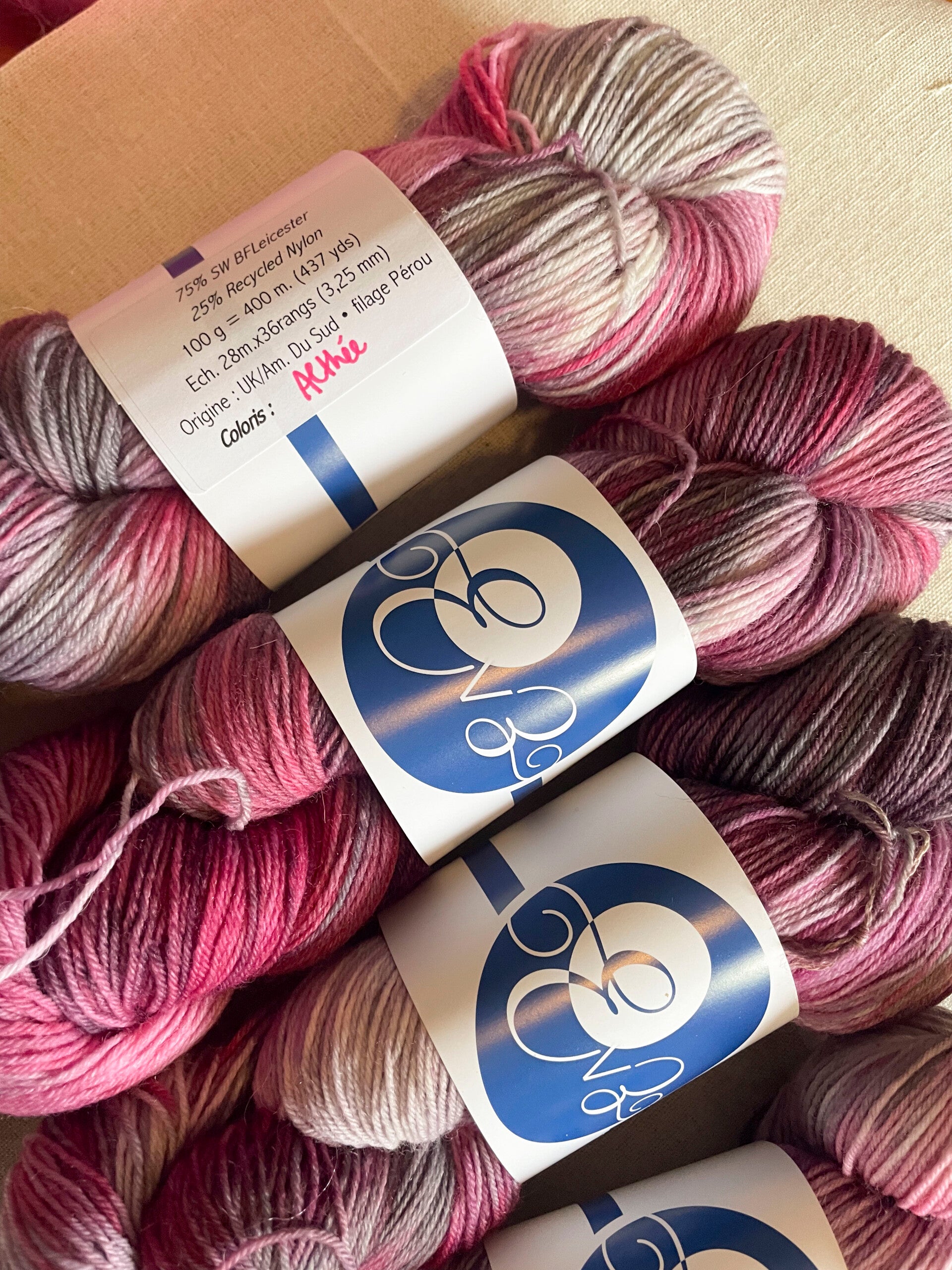 Écheveau 75% SW BFL 25% nylon au lustre caractéristique et très douce, idéale pour tricoter des chaussettes chaudes