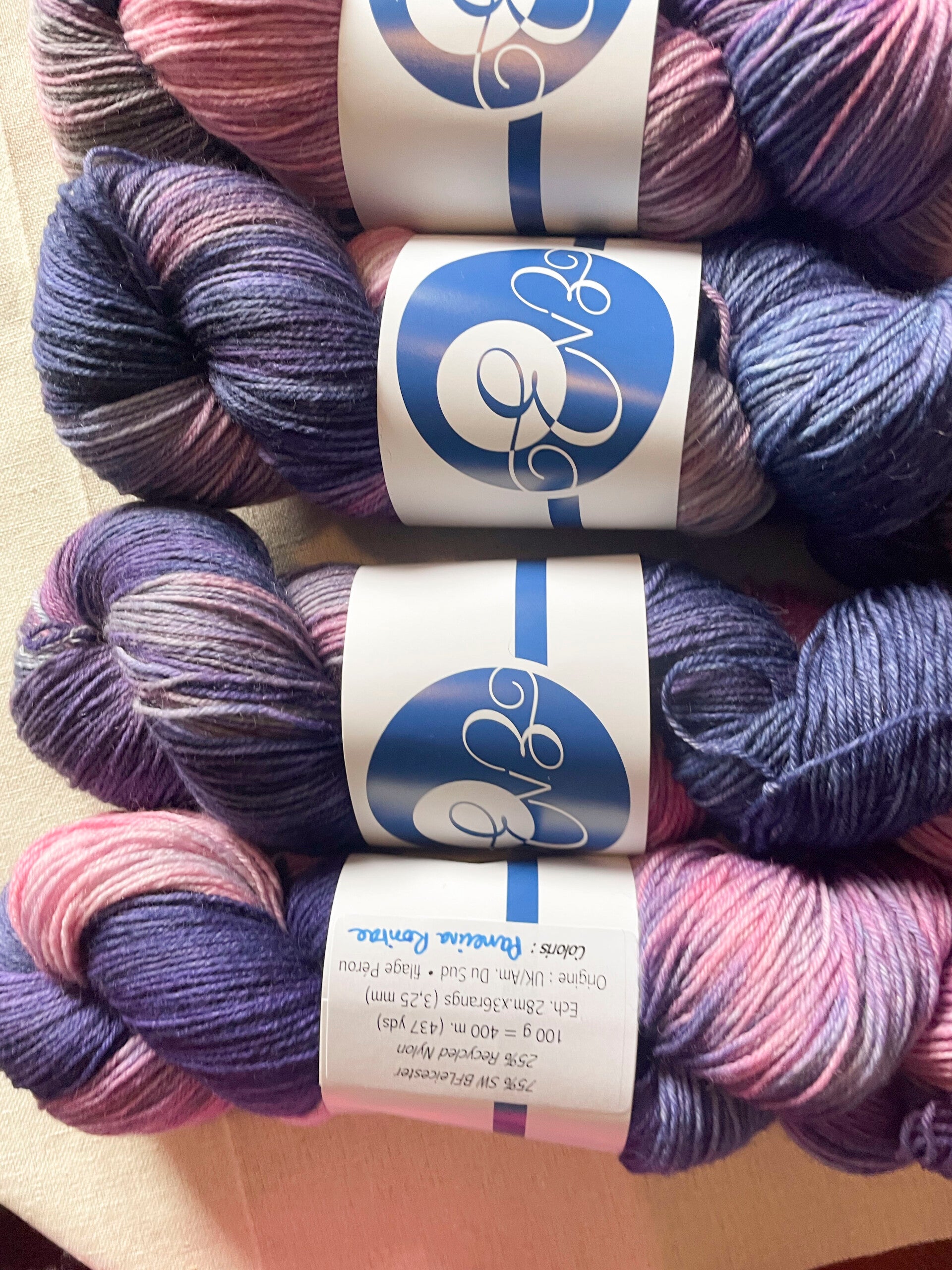 Écheveau 75% SW BFL 25% nylon au lustre caractéristique et très douce, idéale pour tricoter des chaussettes chaudes