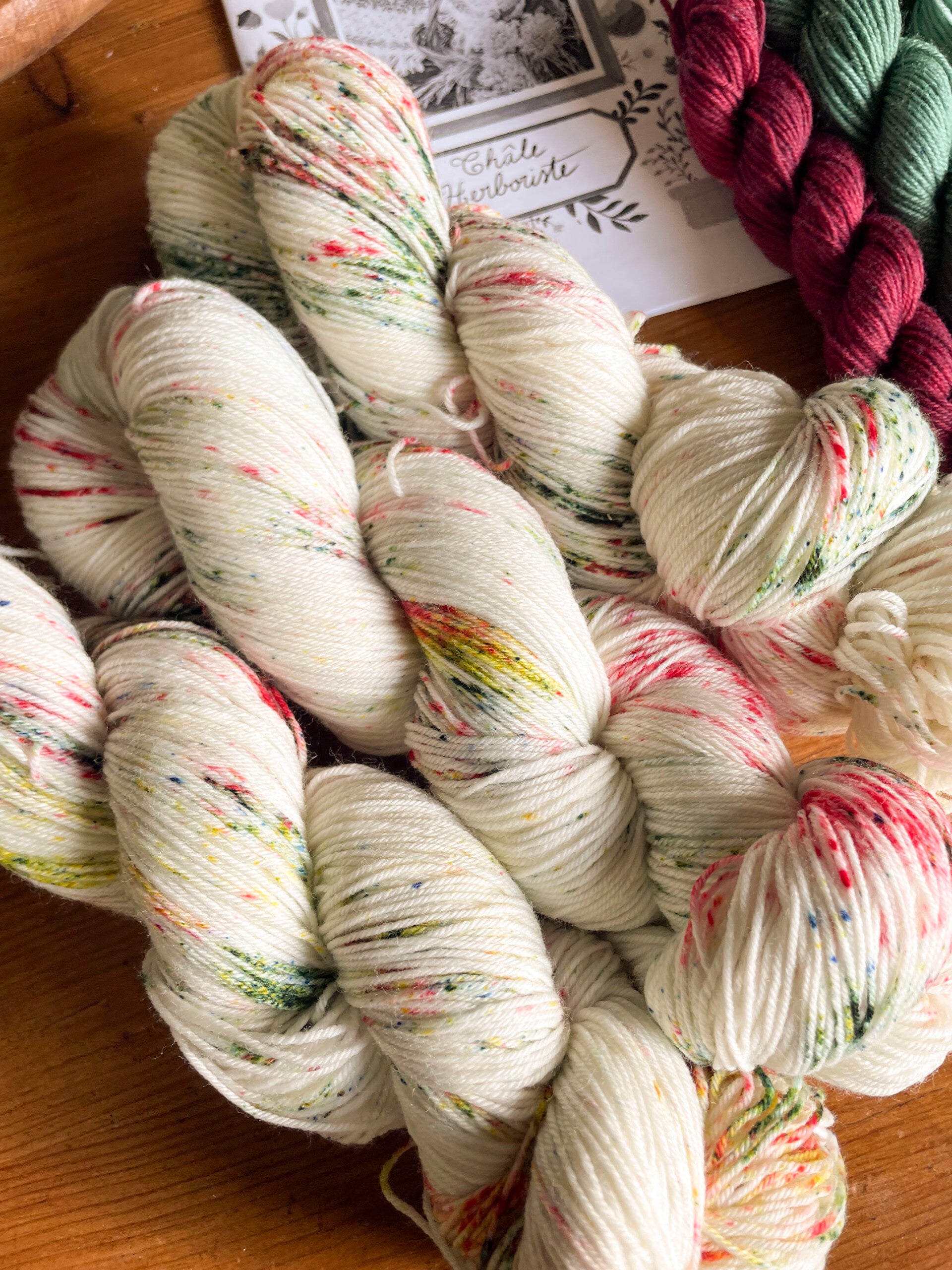 -- 3 écheveaux de Merino Nylon en épaisseur fingering (100g/400m.) - coloris Tâches de figue
