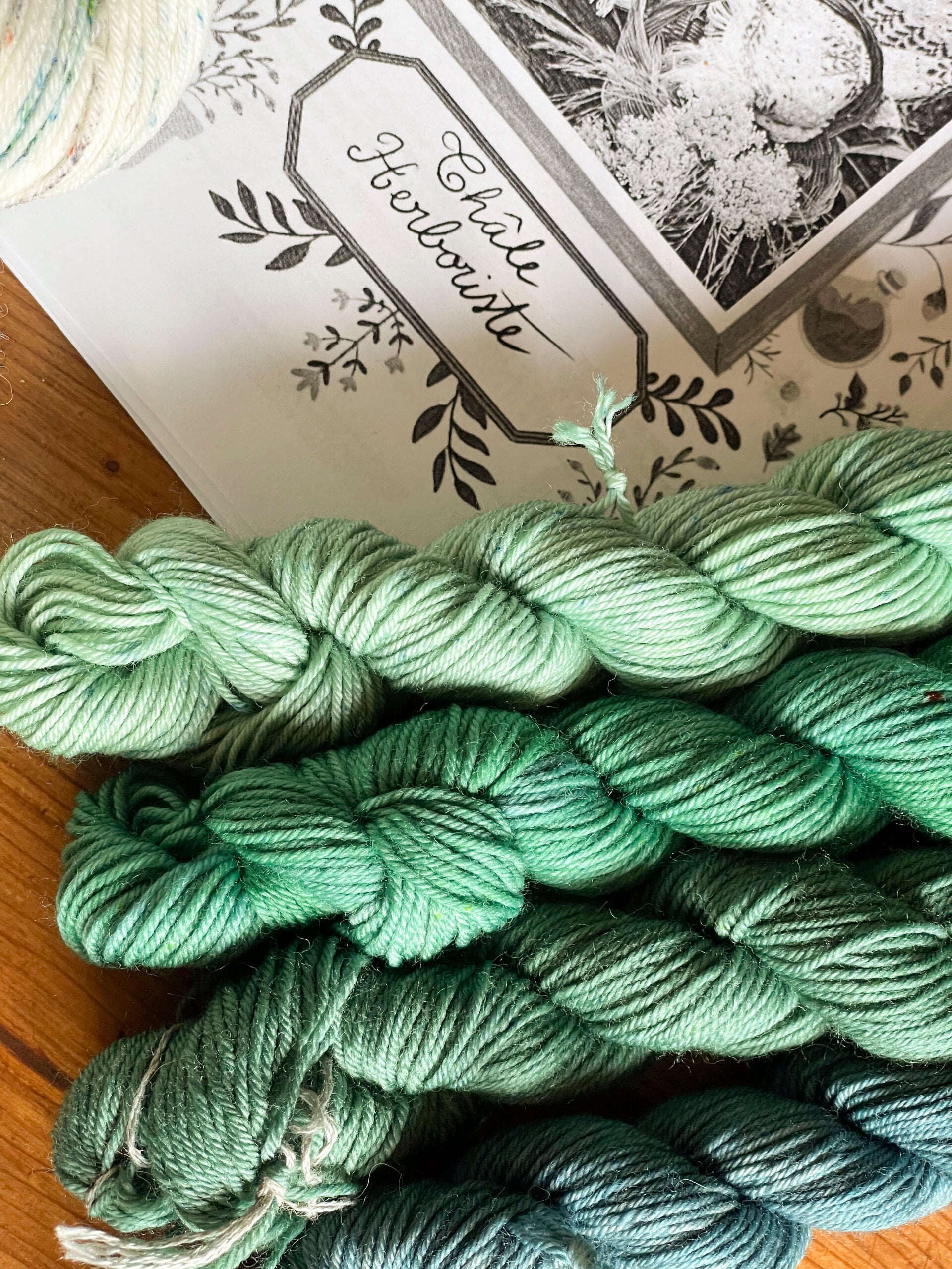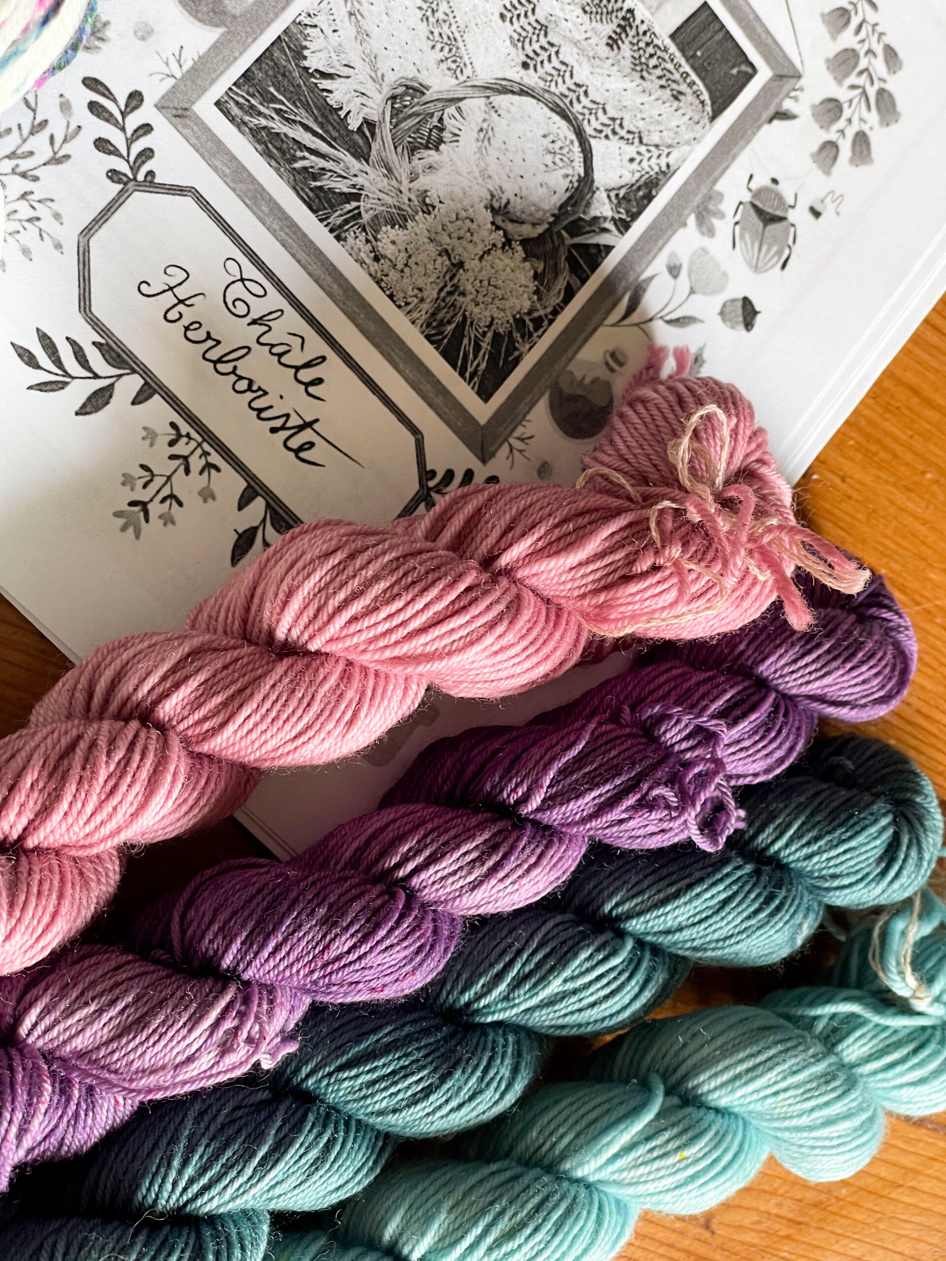 Précommandez vos coloris de base pour confectionner le châle Herboriste d'ArsMirabilia