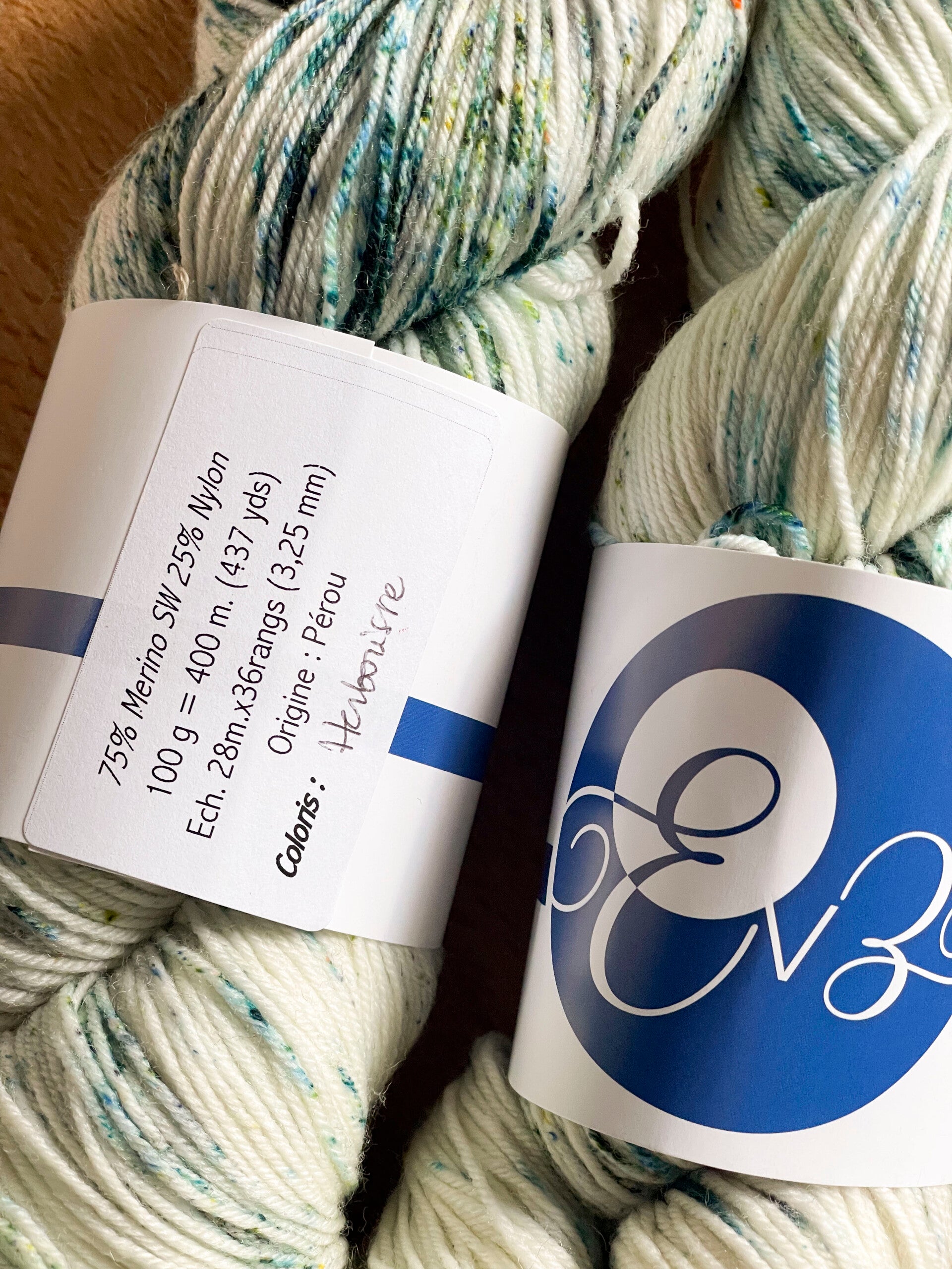 Mélange de mérinos (75%) et nylon (25%) pour un fil polyvalent résistant bien à l’usure, lavable en machine, parfait pour confectionner des chaussettes mais parfait aussi pour les châles et autres vêtements portés à même la peau.